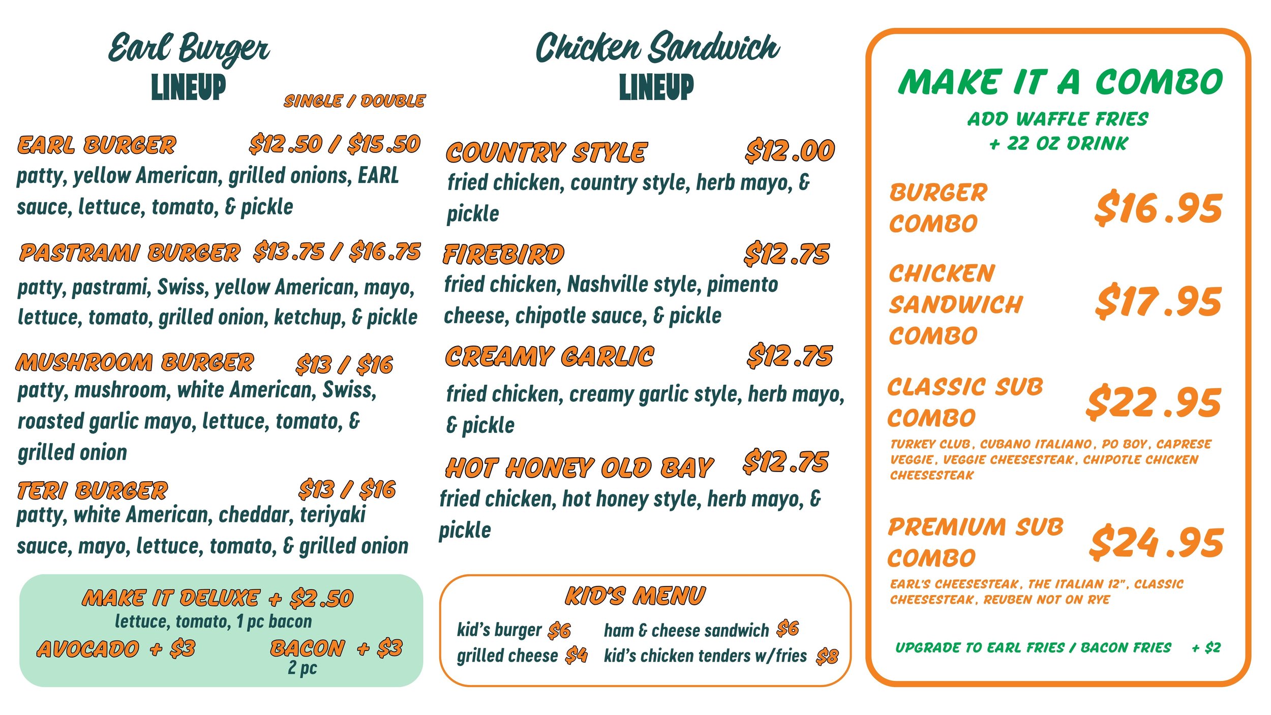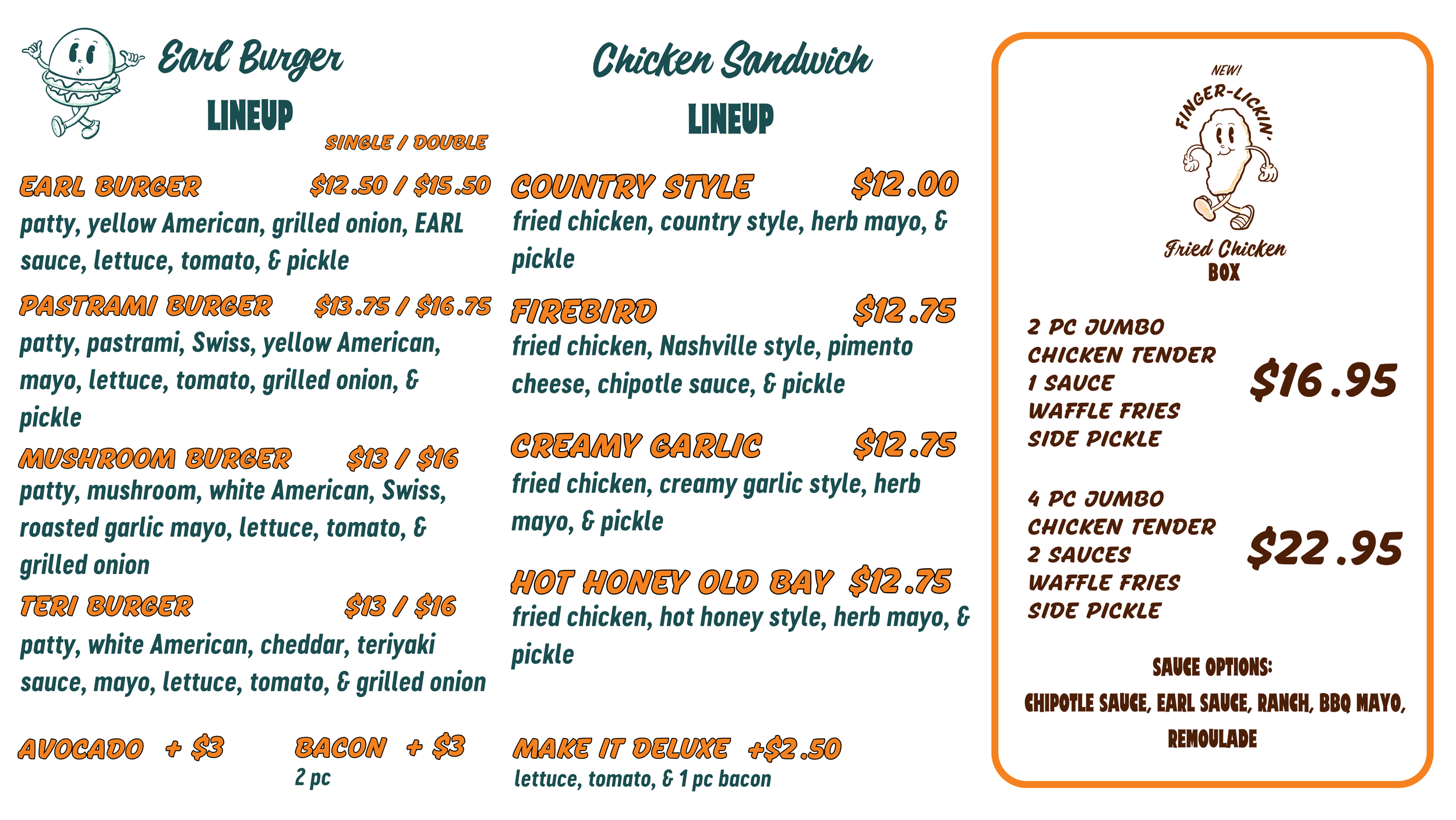 Whether you’re on the West side or in town, come try and enjoy delicious East Coast-style subs, burgers, and fried chicken at an E.A.R.L. near you!